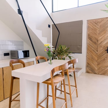 This Studio Mezzanine project showcases how thoughtful design can completely redefine compact living. What began as a small, underutilized structure was transformed into a bright, functional, and modern home through a full architectural and interior renovation. The result is a warm minimalist space that feels open, layered, and surprisingly generous in scale — even on a limited footprint.