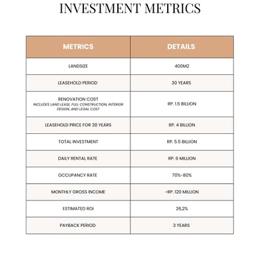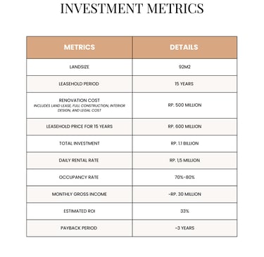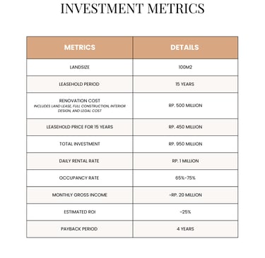 Currently, 100% of our listings are located in Canggu, Bali’s hottest investment destination. With its thriving café culture, stunning beaches, and strong demand for short-term rentals, Canggu offers high occupancy rates and excellent ROI potential.