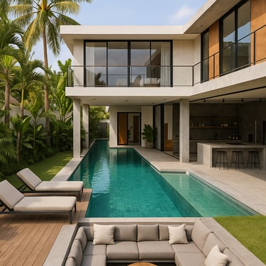 Currently under construction and slated for completion by September 2025, this bright and elegant 4-bedroom villa embodies a clean Contemporary aesthetic, tailored for modern travelers, families, and long-stay guests. Situated in a tranquil residential enclave, the villa seamlessly blends refined design with high rental potential, offering both lifestyle appeal and strong investment returns. Perfectly positioned in one of Bali’s most sought-after areas, it's just minutes away from renowned beach clubs, cafes, and fitness centers.