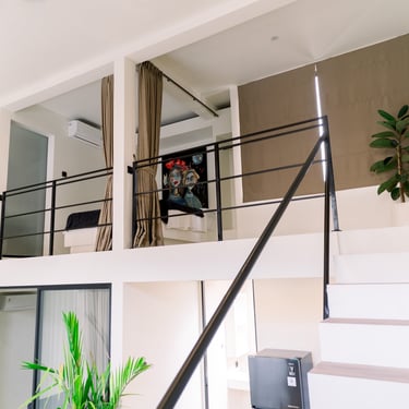 Designed with the modern traveler in mind, this mezzanine studio blends functionality with a minimalist aesthetic. The open layout, elevated sleeping area, and thoughtful material choices create a sense of lightness and flow. Compact yet versatile, the space supports both work and leisure, making it ideal for long stays. Natural finishes and clean lines enhance a calm, contemporary atmosphere — a retreat for urban nomads seeking comfort without compromise.